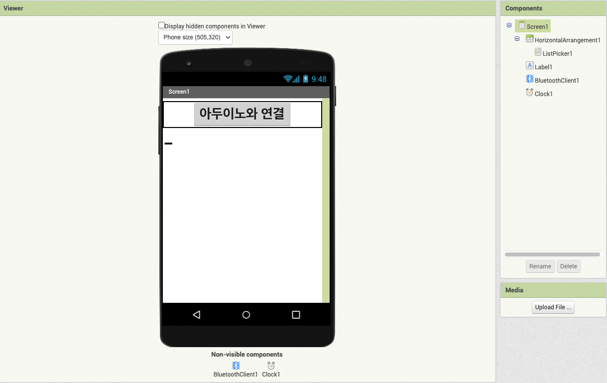 다음과 같은 화면구성과 코드구성을 마치셨다면 MIT App Inventor에서 할 내용은 다 끝났습니다.