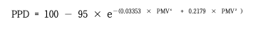 PPD란 PMV를 변수로 이용하는 식으로 "불쾌감을 느낄 사람의 비율"을 나타냅니다.