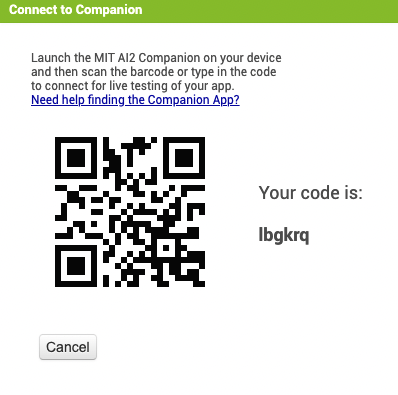 MIT App Inventor - Connect - AI Companion 을 클리하시면 다음과 같은 QR코드가 뜹니다.
