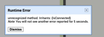 unrecognized method. Irritants : (IsConnected)